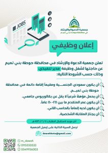 تعلن جمعية الدعوة والإرشاد في محافظة حوطة بني تميم